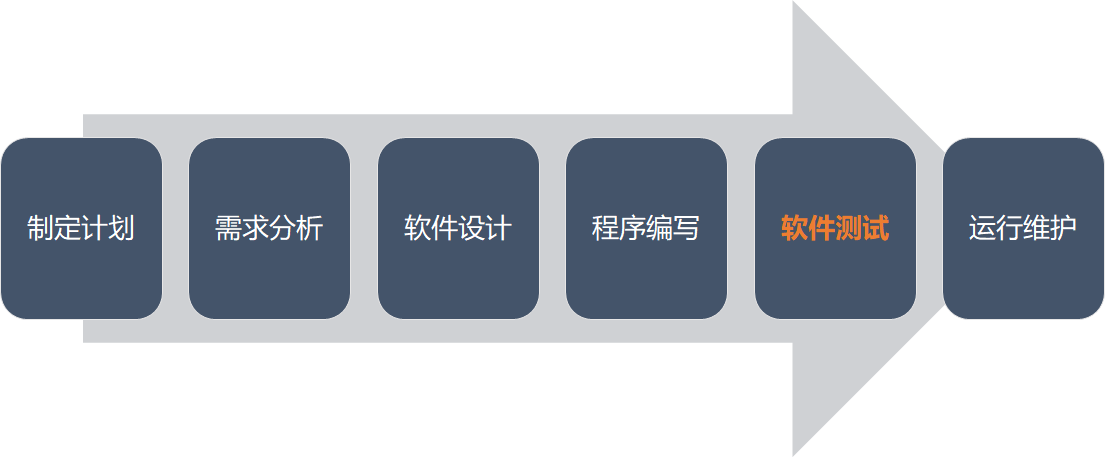 在传统的瀑布开发模式下,测试是一个阶段,程序编写完成后进入测试阶段,如下图所示。