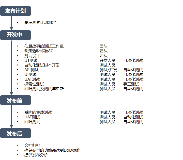 以一个发布周期为例,按照时间线我们看一下测试的安排: