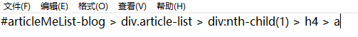 一般来说,在BeautifulSoup库中,我们使用函数select()进行CSS选择器的操作。示例如下: