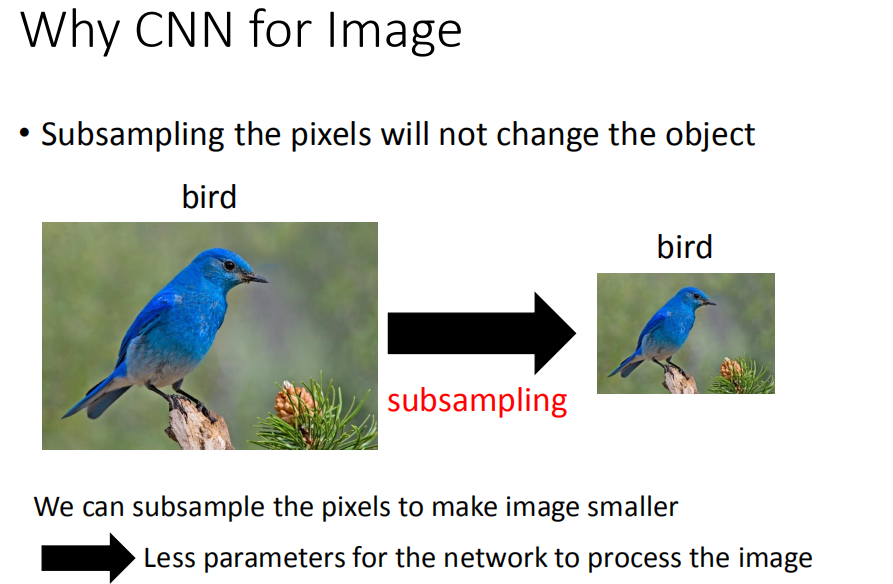 对一张图进行二次抽样, 把一个 image的奇数行,偶数列的pixel拿掉,变成原来十分之一的大小 , 可以用这样的概念把 image变小,这样就可以减少你需要的参数 。