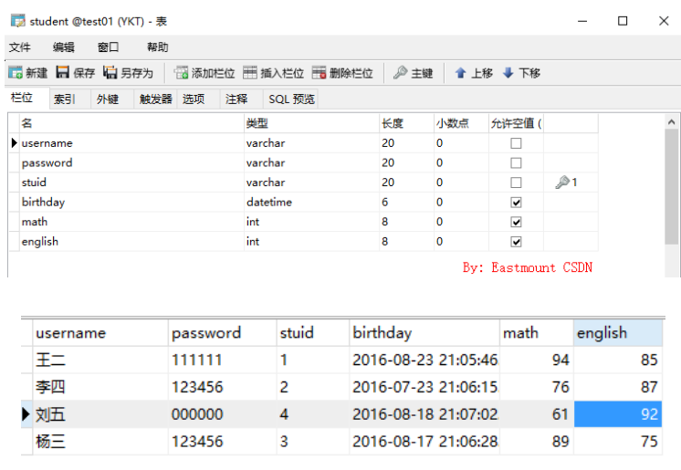 假设存在学生表Student,如下图所示: