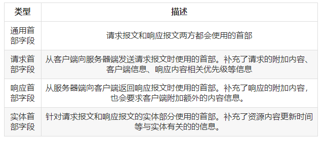 首部字段根据实际用途被分为以下4种类型: