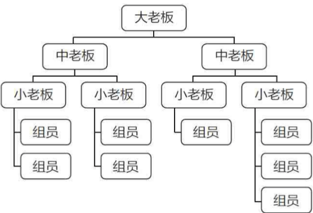 这种模式脱胎于大机构的组织架构,几个人报告给一个小头目,几个小头目报告给中头目,依次而上。