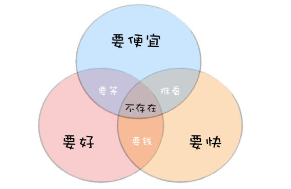 想要软件的成本低,又想要质量好,那就得等;想要便宜又想快速上线,那就得接受质量不好的现实;想要质量好又想要快速上线,那就得花钱;想要价钱便宜、质量好,又要快速上线,是没有这种好事的。