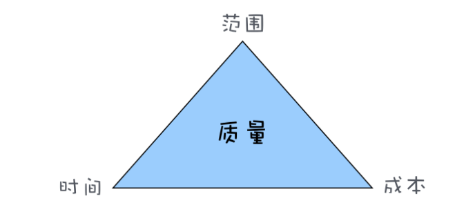 这句话讲的就是软件项目里的金三角:时间(多久可以完成)、成本(花多少钱)、范围(需要实现多少功能),这三个要素决定了最终交付的软件的质量。