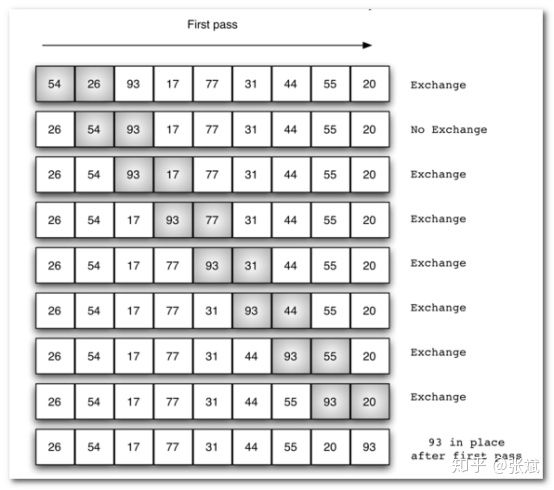 • 持续每次对越来越少的元素重复上面的步骤,直到没有任何一对数字需要比较。