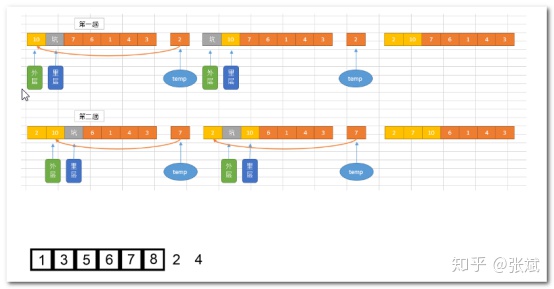 # 退出循环后, low 与 high 重合,此时所指位置为基准元素的正确位置