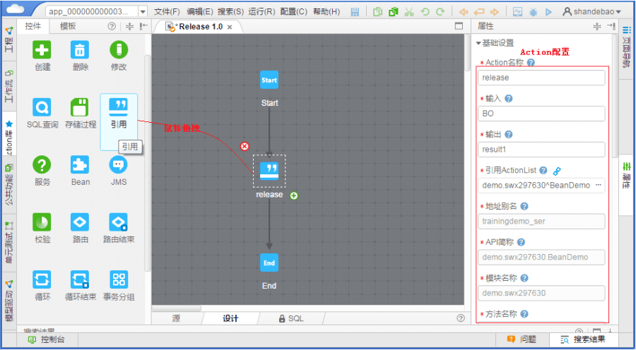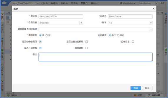 调用其他应用对外暴露的服务的Action,被调用的服务必须是基于“SAAS服务开发规范”的服务,如栏目服务、权限服务、 ActionLIst 服务等。应用对外暴露服务的 ActionList ,引用控制必须为public。