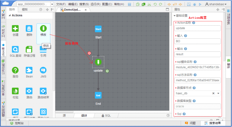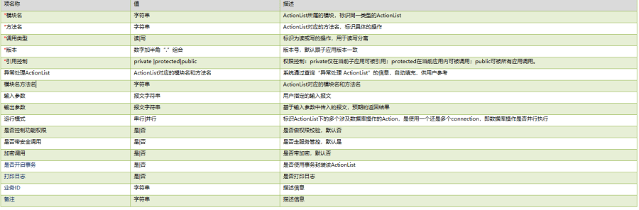 ActionList 为一组处理逻辑的集合。一个 ActionList 中可以包含一个或多个Action, Actionlist 就是HAE sCloud 的服务。每个Action定义了一个处理逻辑单元,比如向数据库插入数据、调用存储过程、循环逻辑处理。