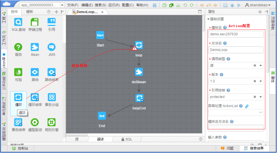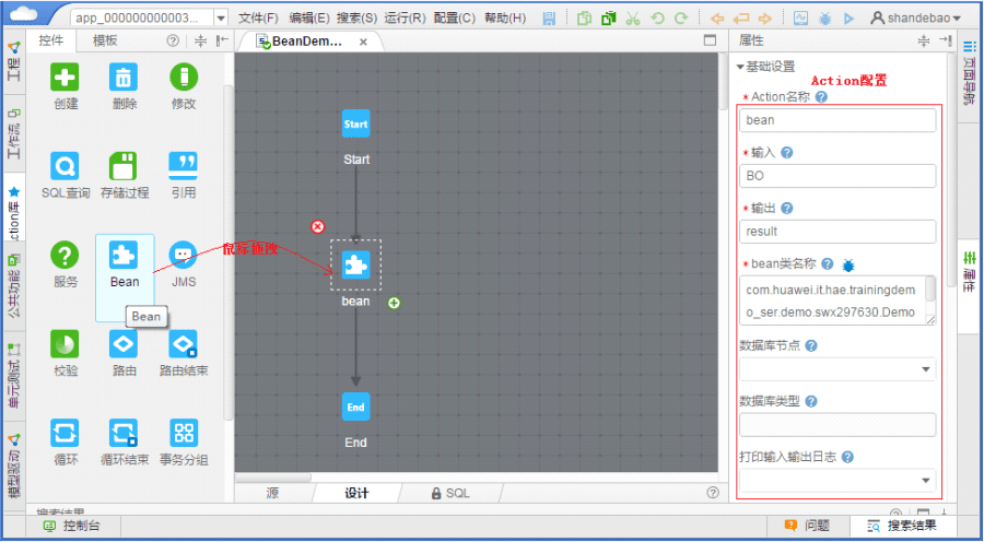 调用指定JavaBean的Action,JavaBean必须要实现 com.huawei.it.common.framework.action.ActionBeanInterface 接口,用户可以在JavaBean中实现各种逻辑。