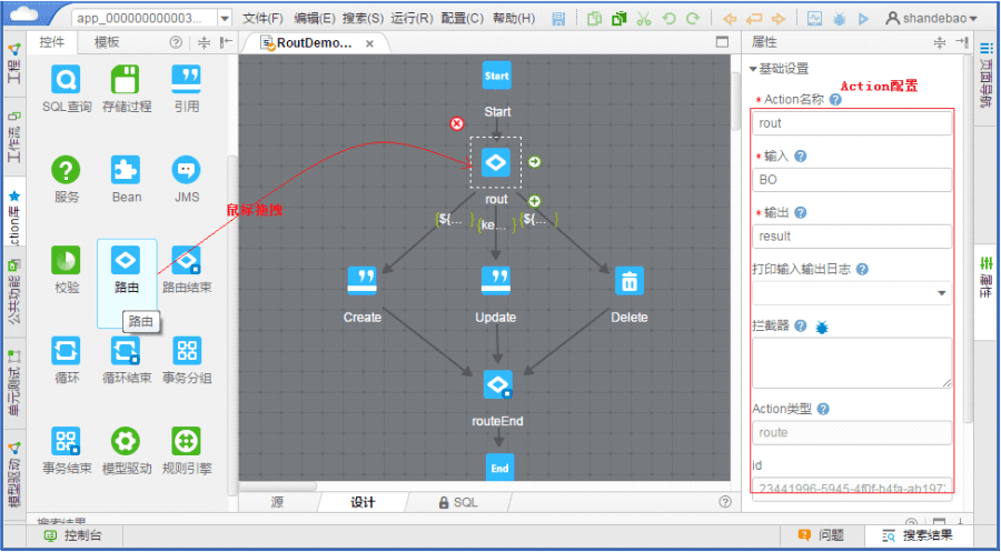 通过配置不同的执行条件,执行不同的Action。用路由进行条件判断会使 ActionList 运行路径更加清晰;若通过Action中的执行条件来判断Action是否执行,产生的 ActionList 执行路径会形成很多孤立的点,运行路径不够清晰。