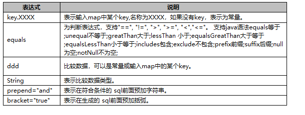 <if exp =" key.XXXX,equals , ddd,String " prepend="and" bracket="true"> sql </if> |