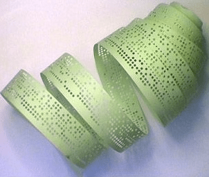 在早期,人们通过纸带来编程,打孔的地方表示1, 不 打孔的地方表示0,然后将纸带输入计算机中。这种方式不但费时费力,而且不同发现错误。