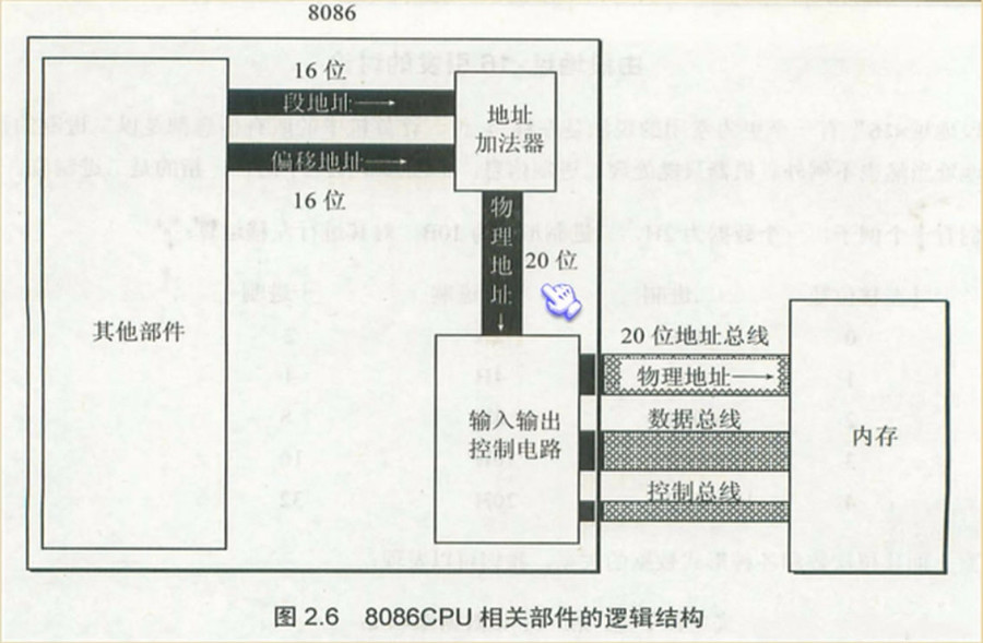 地址加法器工作原理:物理地址=段地址*16+偏移地址。
