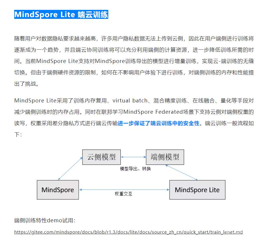 没想到仅仅过了2个小版本号,MindSpore 就不仅支持端侧推理,而且支持端侧训练了。