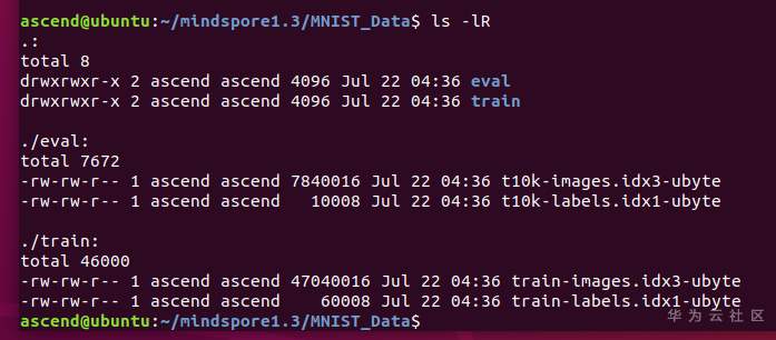 MNIST数据集下载了很多次,就连正在进行中的 昇腾CANN训练营第二期中也用到了多次。张小白就把这次训练营在Windows中使用的数据集使用XFTP工具上传到 ~/mindspore1.3目录下: