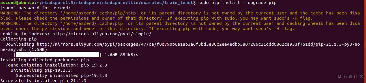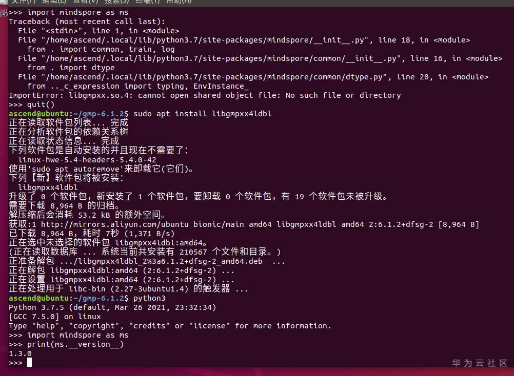 (6)安装MindSpore 1.3 for ubuntu (CPU)