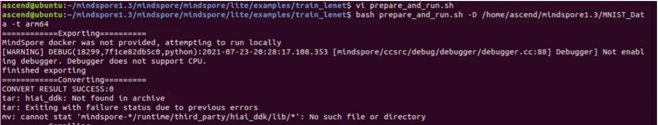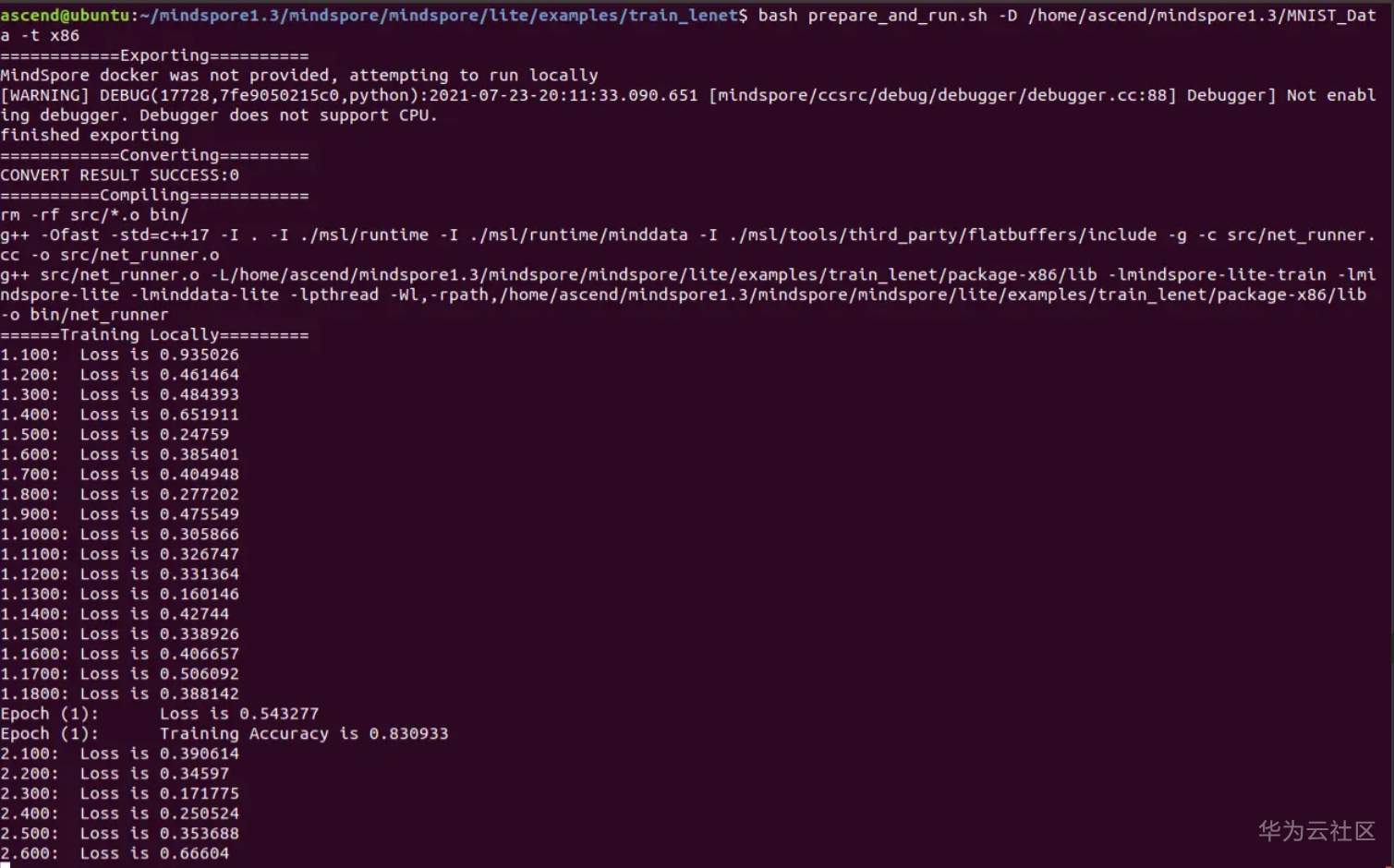 bash prepare_and_run.sh -D /home/ascend/mindspore1.3/MNIST_Data -t x86