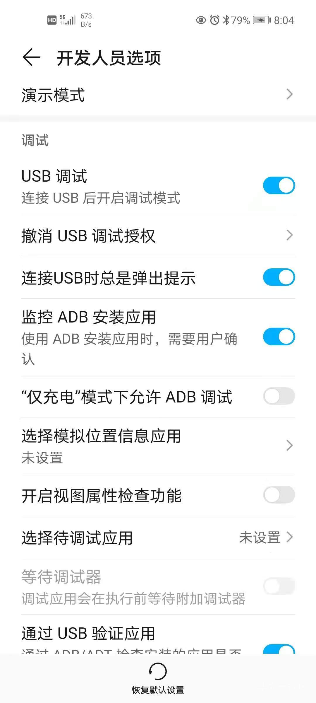 张小白将荣耀30手机使用Type-C线与笔记本电脑相连,并打开USB调试开关: