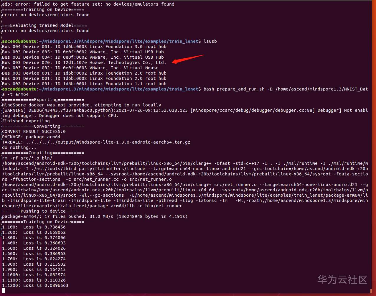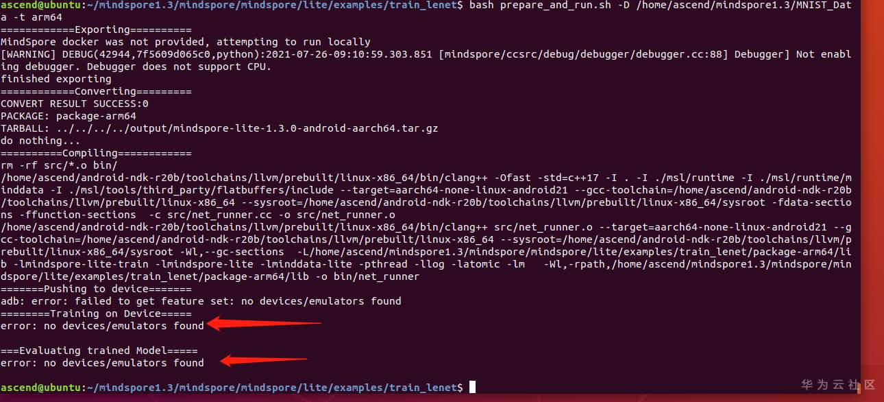 bash prepare_and_run.sh -D /home/ascend/mindspore1.3/MNIST_Data -t arm64