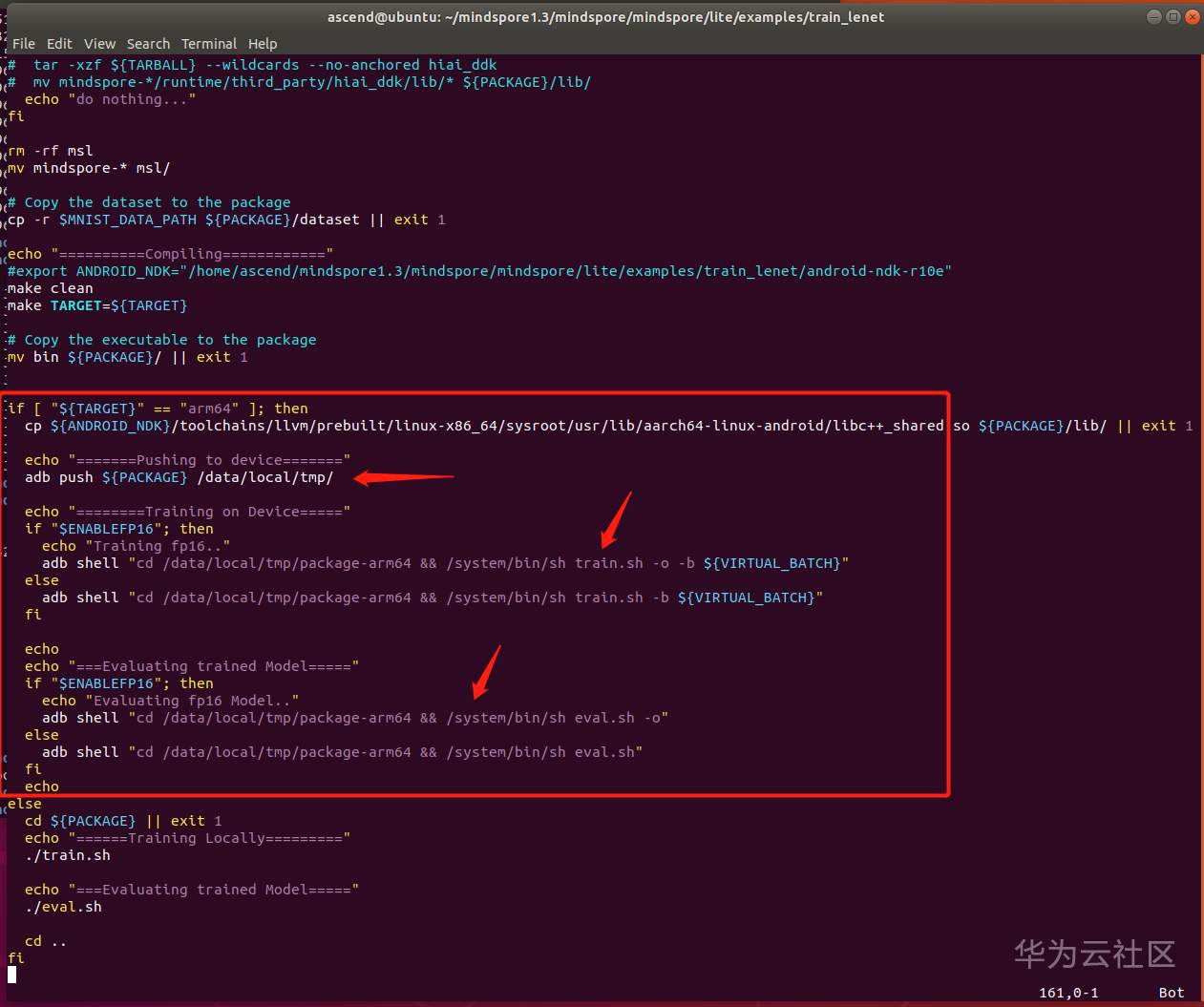 其实看 prepare_and_run.sh中的带有arm64参数执行的代码部分,分别调用了 adb push, adb shell,就可以知道确实是在 ubuntu上远程进行了训练。