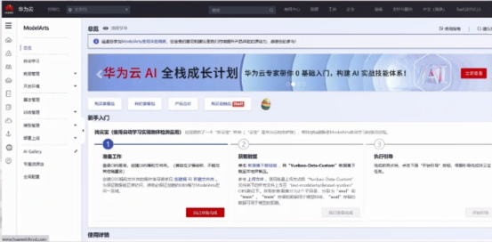 ModelArts是一个一站式的开发平台,能够支撑开发者从数据到AI应用的全流程开发过程。包含数据处理、模型训练、模型管理、模型部署等操作,并且提供AI Gallery功能,能够在市场内与其他开发者分享模型。