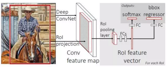 最后一个卷积层后加了一个ROI pooling layer。ROI pooling layer首先可以将image中的ROI定位到feature map,然后是用一个单层的SPP layer将这个feature map patch池化为固定大小的feature之后再传入全连接层。