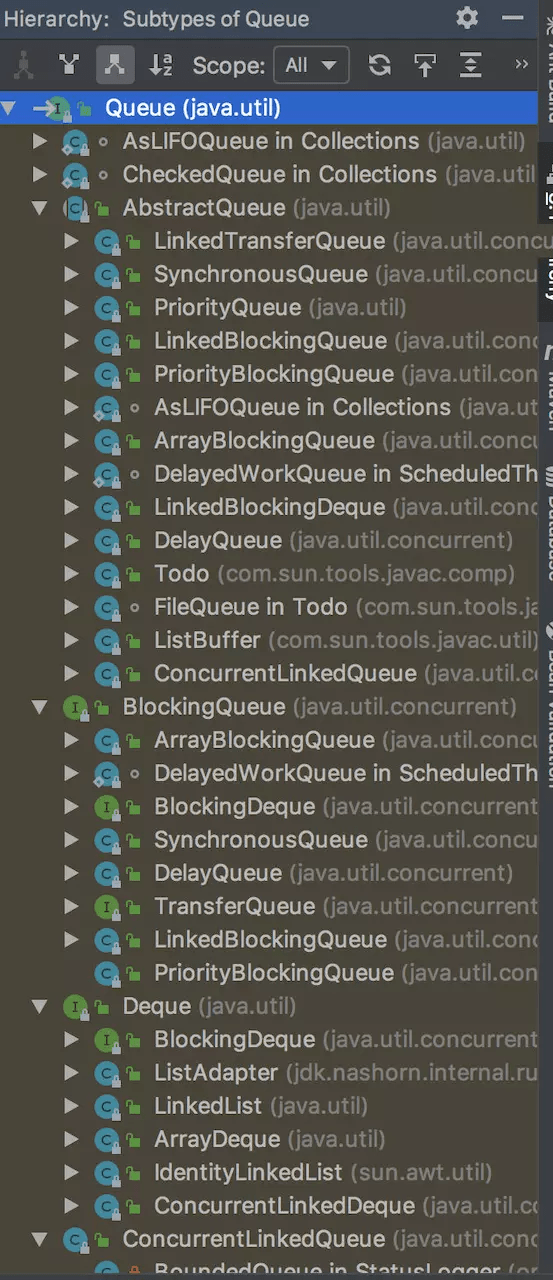 在Java里边,已经实现了不少的队列了: