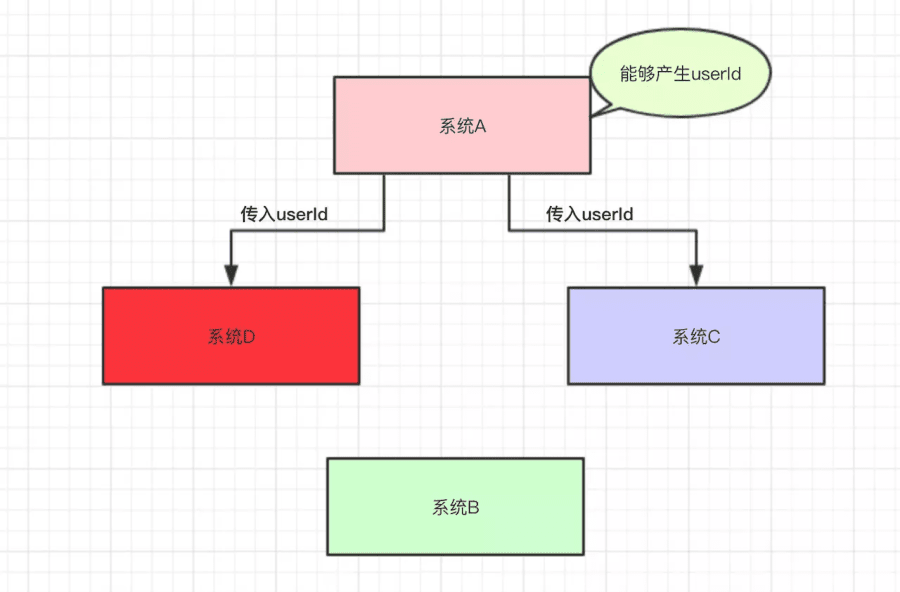 又过了几天,系统D的负责人接了个需求,也需要用到系统A的userId,于是就跑去跟系统A的负责人说:"老哥,我要用到你的userId,你调一下我的接口吧"