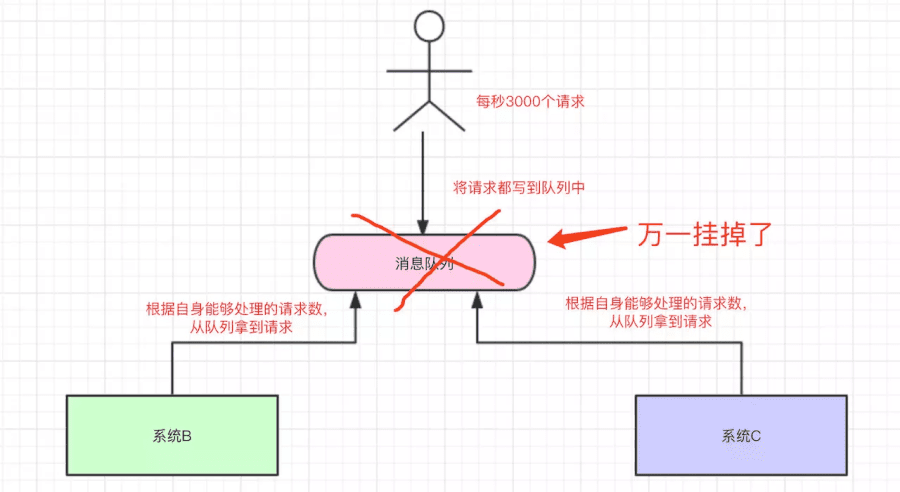 那多出来的1000个请求,可能就把我们 整个系统给搞崩了 ...所以,有一种办法,我们可以写到消息队列中: