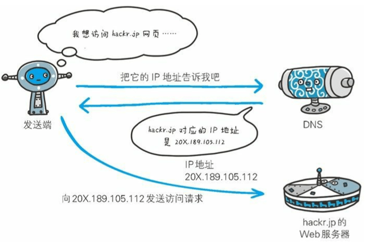 DNS(Domain Name System)服务是和 HTTP 协议一样位于应用层的 协议。它提供域名到 IP 地址之间的解析服务。 计算机既可以被赋予 IP 地址,也可以被赋予主机名和域名。比如 www.hackr.com。 用户通常使用主机名或域名来访问对方的计算机,而不是直接通过 IP 地址访问。因为与 IP 地址的一组纯数字相比,用字母配合数字的表 示形式来指定计算机名更符合人类的记忆习惯。