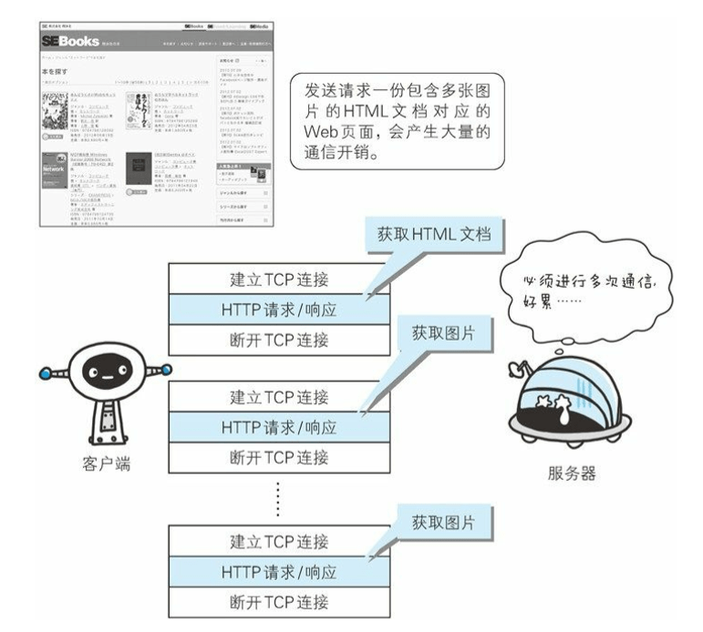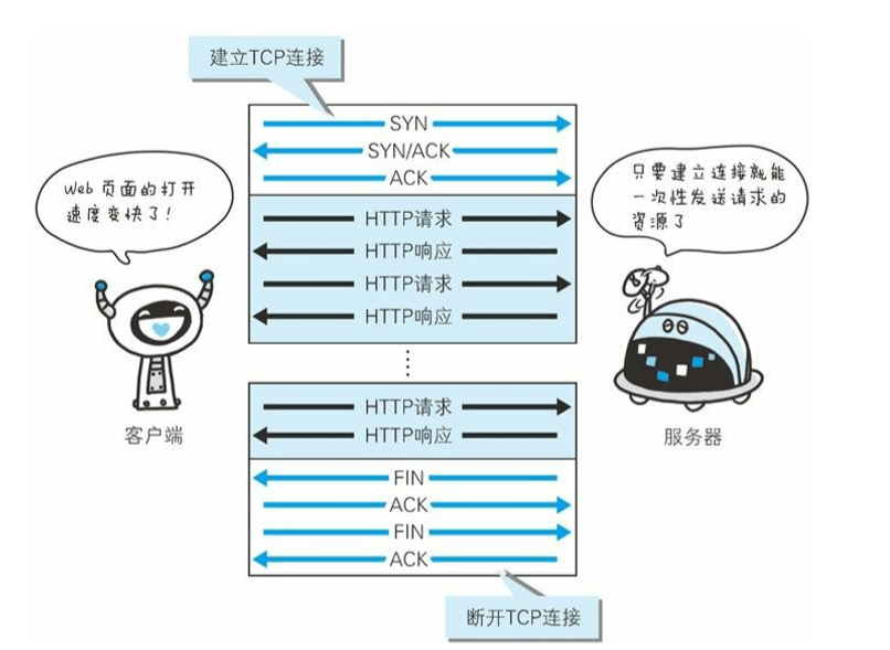 持久连接的好处在于减少了 TCP 连接的重复建立和断开所造成的额外开销,减轻了服务器端的负载。另外,减少开销的那部分时间,使 HTTP 请求和响应能够更早地结束,这样 Web 页面的显示速度也就相应提高了。