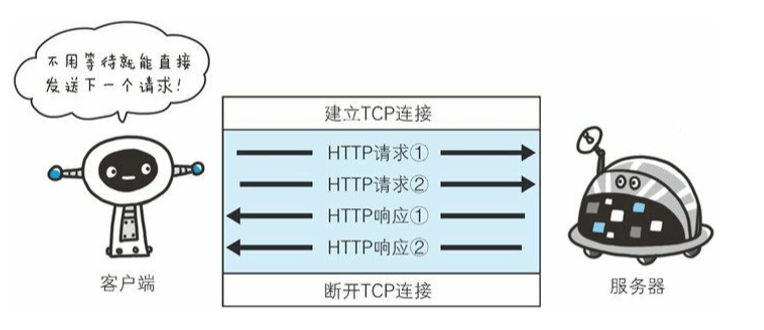 持久连接使得多数请求以管线化(pipelining)方式发送成为可能。从 前发送请求后需等待并收到响应,才能发送下一个请求。管线化技术 出现后,不用等待响应亦可直接发送下一个请求。