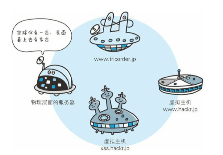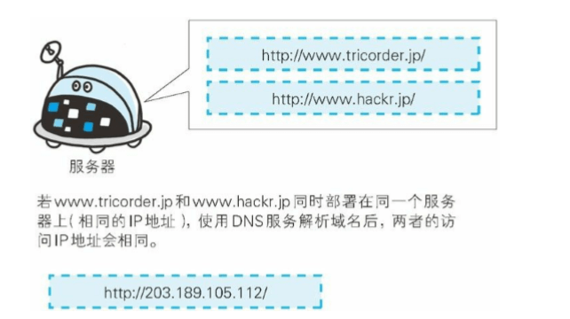 所以,如果一台服务器内托管了 www.tricorder.jp 和 www.hackr.jp 这 两个域名,当收到请求时就需要弄清楚究竟要访问哪个域名。