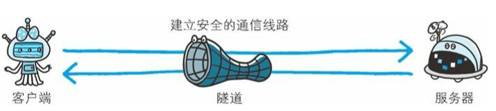 隧道可按要求建立起一条与其他服务器的通信线路,届时使用 SSL 等 加密手段进行通信。隧道的目的是确保客户端能与服务器进行安全的 通信。