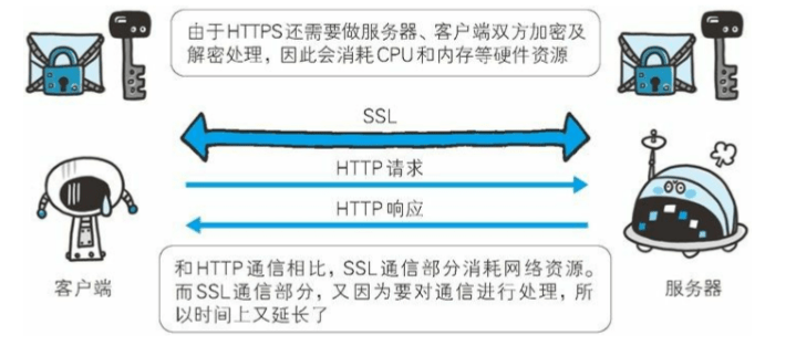 其中一个原因是,因为与纯文本通信相比,加密通信会消耗更多的 CPU 及内存资源。如果每次通信都加密,会消耗相当多的资源,平 摊到一台计算机上时,能够处理的请求数量必定也会随之减少。因此,如果是非敏感信息则使用 HTTP 通信,只有在包含个人信息 等敏感数据时,才利用 HTTPS 加密通信。 特别是每当那些访问量较多的 Web 网站在进行加密处理时,它们 所承担着的负载不容小觑。在进行加密处理时,并非对所有内容都 进行加密处理,而是仅在那些需要信息隐藏时才会加密,以节约资源。
