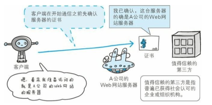 虽然使用 HTTP 协议无法确定通信方,但如果使用 SSL 则可以。 SSL 不仅提供加密处理,而且还使用了一种被称为证书的手段, 可用于确定方。证书由值得信任的第三方机构颁发,用以证明服务器和客户端是实际存在的。另外,伪造证书从技术角度来说是异常困难的一件 事。所以只要能够确认通信方(服务器或客户端)持有的证书, 即可判断通信方的真实意图。