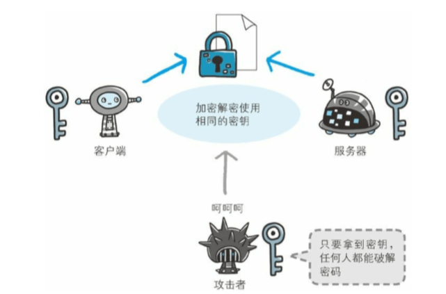 加密和解密都会用到密钥。没有密钥就无法对密码解密,反过来说, 任何人只要持有密钥就能解密了。如果密钥被攻击者获得,那加密也就失去了意义