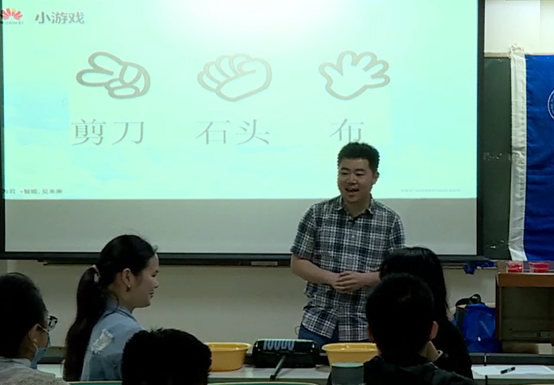 在这个游戏中,张老师启发同学们,石头剪刀布中,赢得一份虽然占有优势,可以占有锤子来击打对方,但输的一方也有抢盆子的权利来保护自己,这样即使剪刀石头布输了,最终的结果却不一定输。那要怎么样增加自己赢的概率呢?是苦练剪刀石头布的能力以及自己的反应速度吗?当然不是,这需要花费很长的时间。