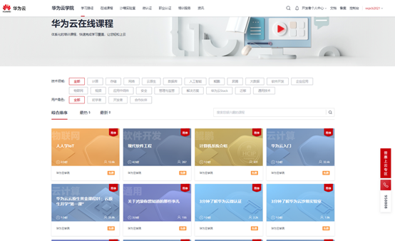 为了能更好的提供自己的技术实力,张老师分享了一些华为免费的学习资源,就是我们的华为云官网,因为华为云主打的是云计算,除此之外,还要许多其它的部分方向。