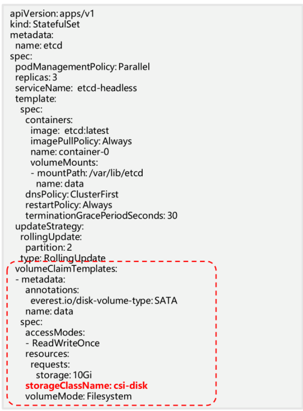 1.用户在StatefulSet模板中定义对存储的需要