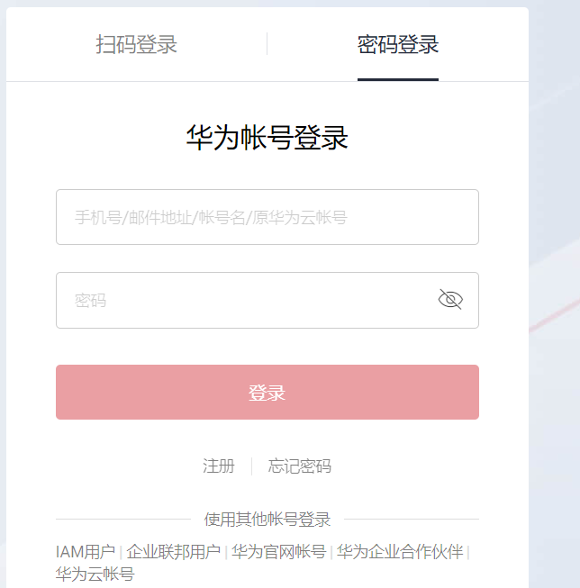 在日常生活中,我们使用的app或者网站,都需要登陆账户才能进行下一步操作,例如华为云的登陆界面: