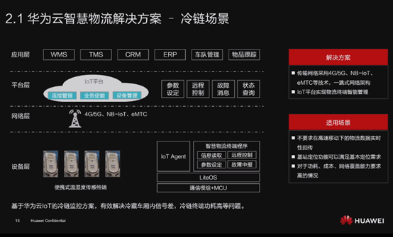 总结了传统物流行业的短板和生产厂家的需求,华为云提出了智慧物流解决方案-冷链场景