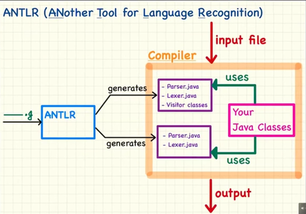 - ANTLR (ANother Tool for Language Recognition ) 是一种语言识别工具,它提供了一个框架,可以通过包含 Java, C++, 或 C# 动作(action)的语法描述来构造语言识别器,编译器和解释器。
