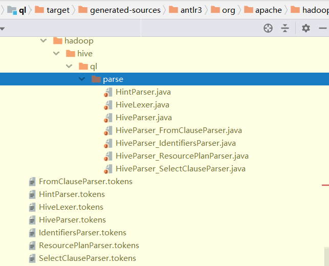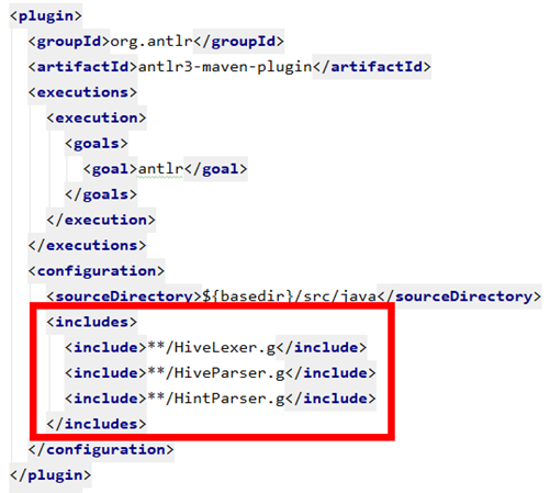 Hive工程的pom文件设置了使用antlr插件编译HiveLexer.g、HiveParser.g、HintParser.g文件