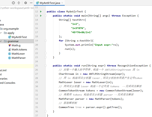 编译后得到antlr根据.g文件生成的词法、语法解析器