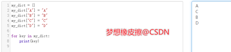 为了测试字典的无序性,我专门在 Python 线上环境进行了测试,代码如下: