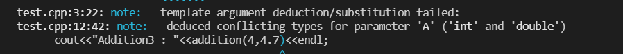如果执行cout<<"Addition3 : "<<addition(4,4.7)<<endl;,将会报错。