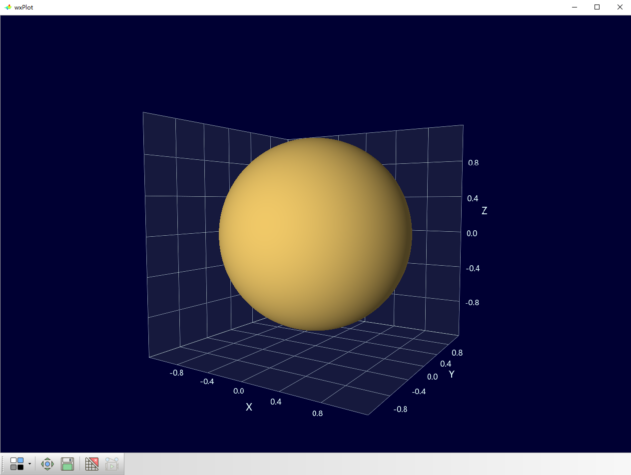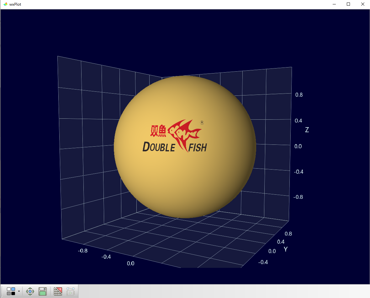 WxGL提供了类似Matplotlib风格2D/3D绘图函数,并且自动选择2D/3D模式,无需用户设置。如果熟悉Matplotlib的话,几分钟就可以学会。我们先从绘制一只乒乓球开始。