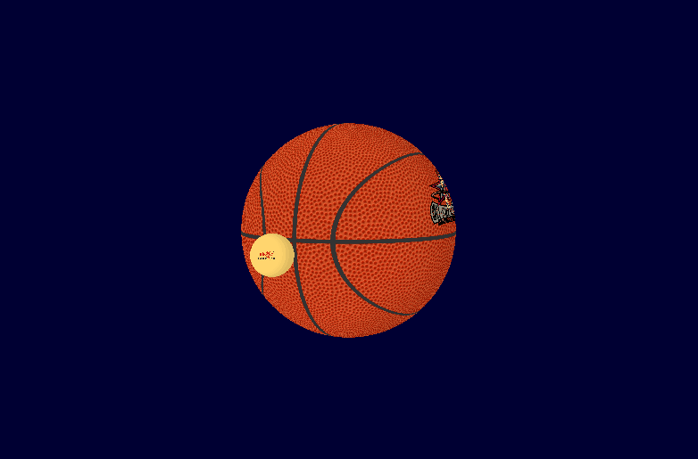 至此,终于可以随心所欲地制作自己喜欢的篮球了,甚至可以把自己喜欢的球星印在篮球上。不过,要是能让篮球转起来就更好了。嗯,这很容易,WxGL提供了很多方式实现这个愿望。下面的代码实现了非常复杂的动作。